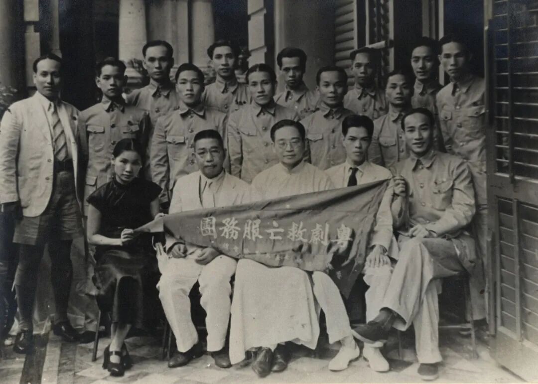 1938年,欧阳予倩在香港和粤剧救亡服务团合影