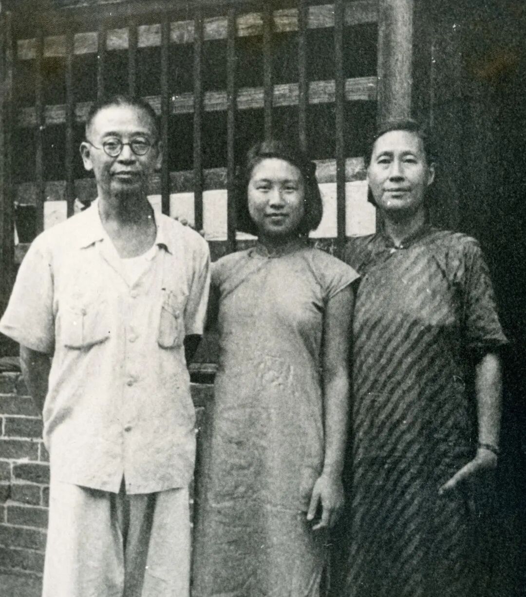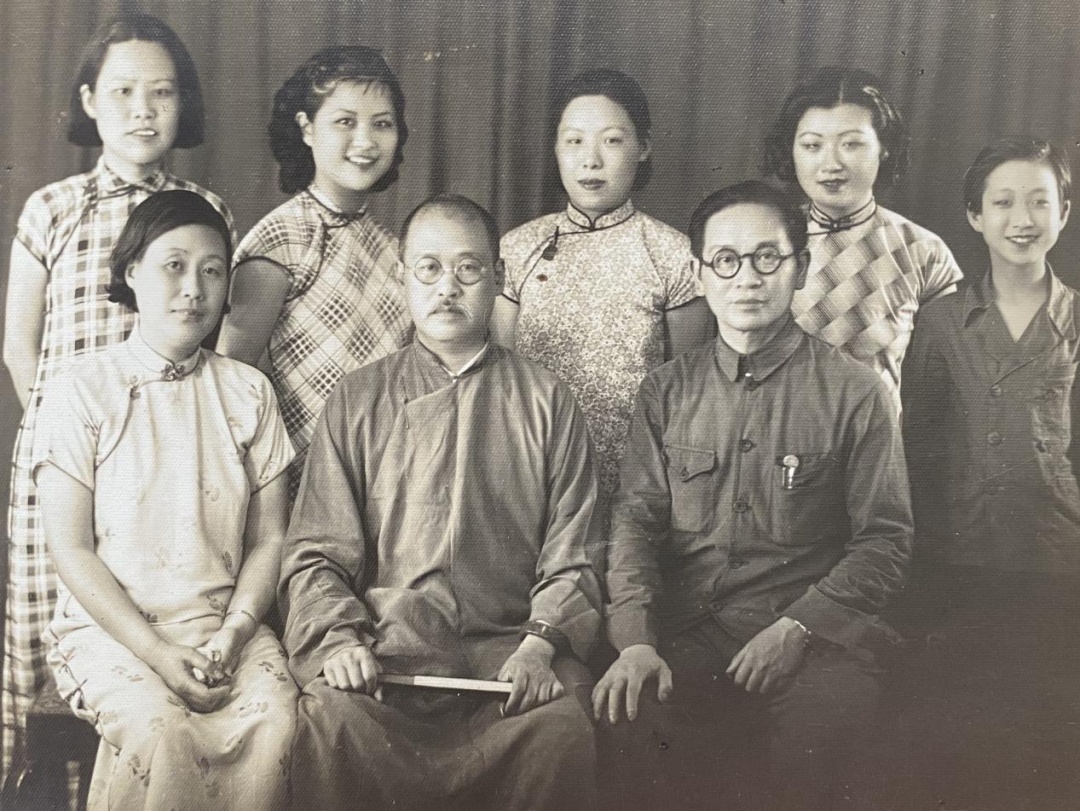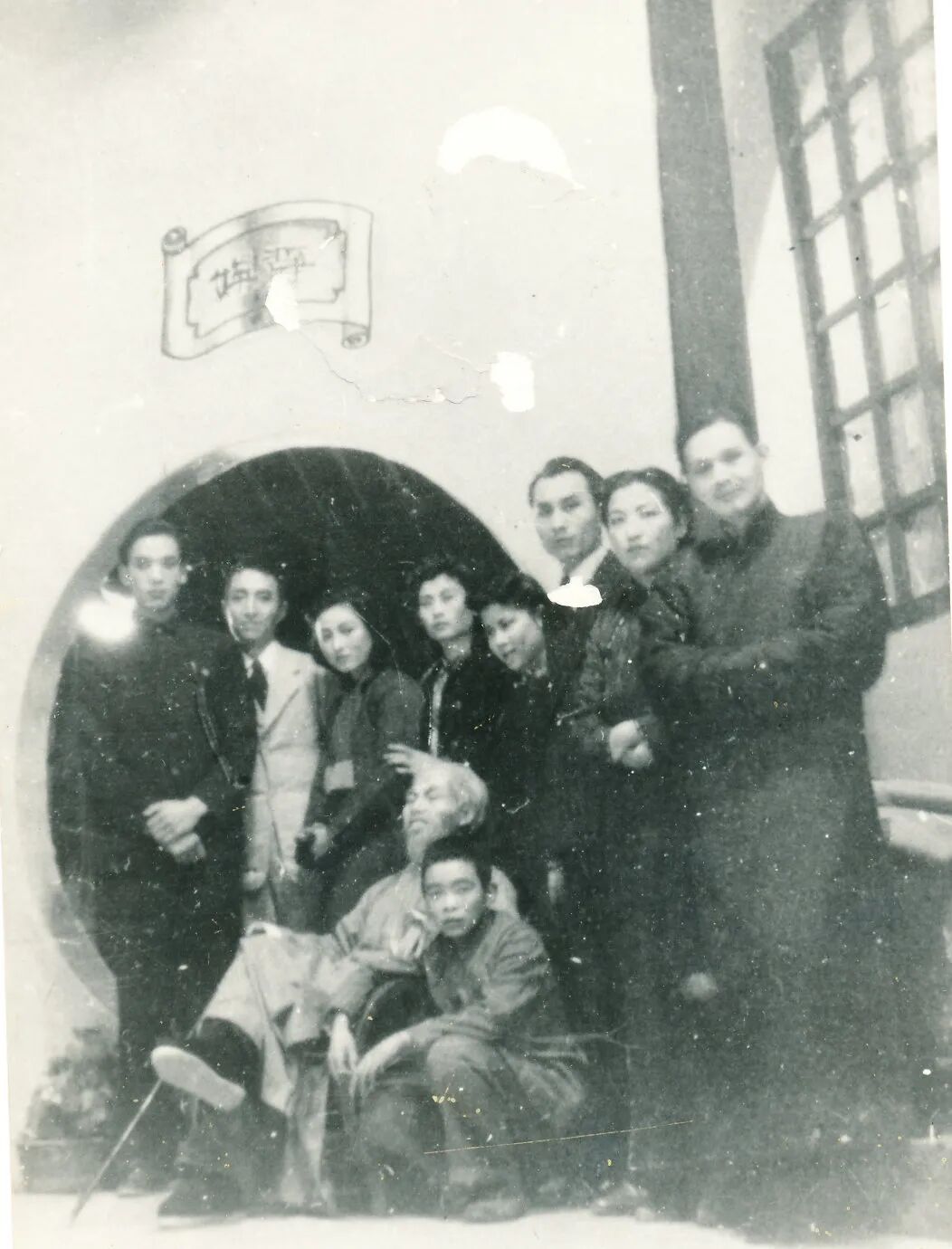 1940年,欧阳予倩夫妇在桂林与秘书田念萱(后排左一)等人合影