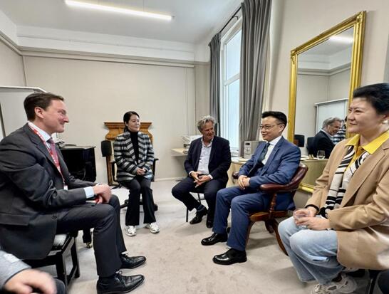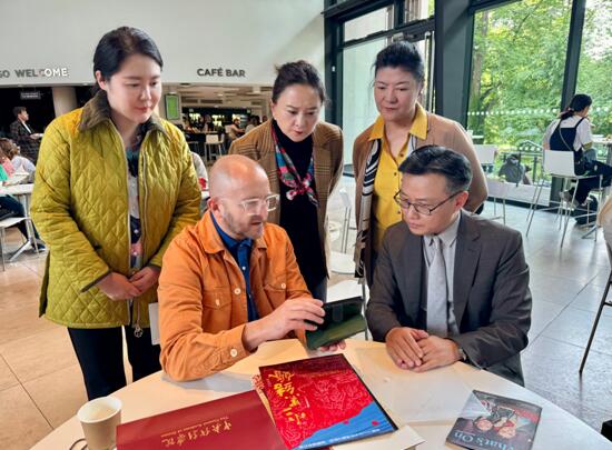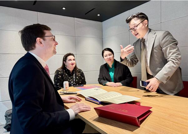 (代表团与英国皇家威尔士音乐与戏剧学院音乐总监Tim Rhys-Evans、歌剧学院艺术总监James Southall交流洽谈)