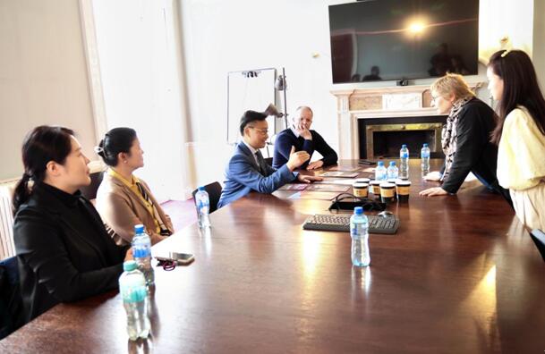 (歌剧系党总支书记石垒向爱尔兰皇家音乐学院院长介绍我系歌剧创排情况)