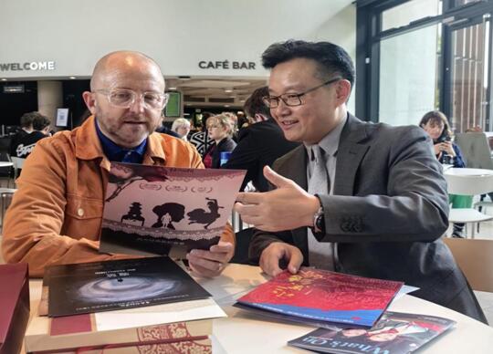 (石垒教授与英国BBC卡迪夫国际声乐比赛艺术总监David Jackson友好交流)