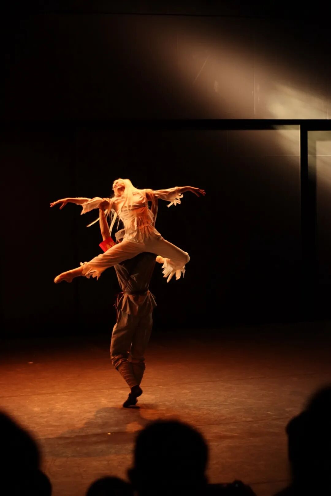 在“教学—创作—表演”一体化的闭环结构中,学生们不仅完成了技术层面的积累,更通过舞台实践深化了对“舞蹈戏剧语言”的理解与运用,在人物建构、情境表达等方面彰显出令人瞩目的发展潜力,为其未来在多元舞台语境中的持续成长筑牢了根基。