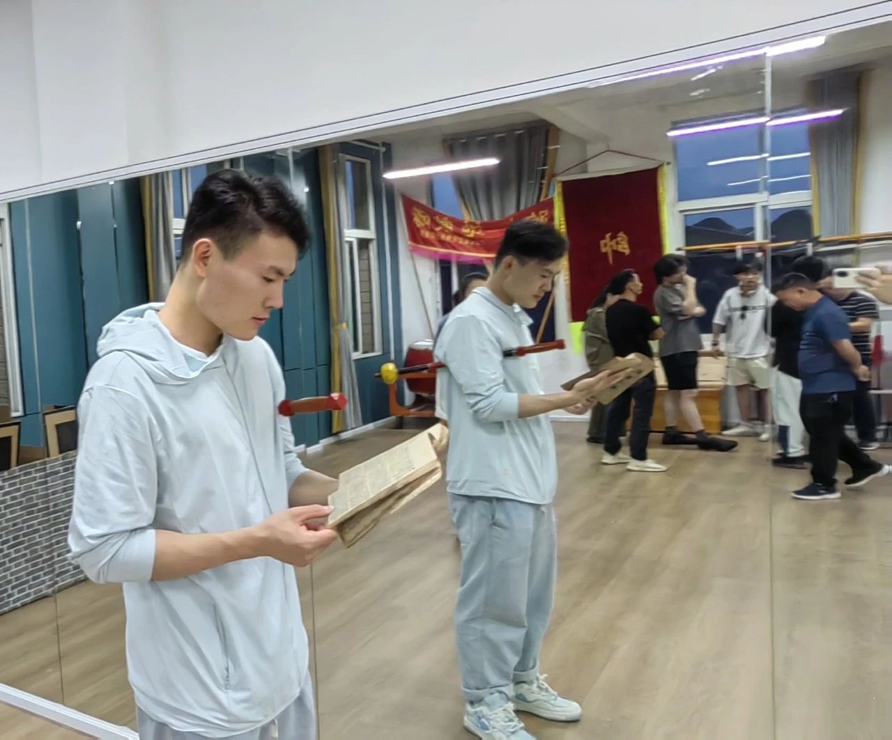 剧团约定的排练时间是每晚八点到十一点,可每当两位同学结束指导离开排练场,演员们总会留下,自发加练一个钟头。要知道,许多人白天刚从沉甸甸的稻穗堆里直起身,脸上还带着劳作后的疲惫。但他们凭着对戏剧的热爱,以及对 “中戏来的老师” 的那份信任,在昏黄的灯光下把招式练得更熟、把唱腔磨得更亮,常常练到深夜才踏着月光回家。
