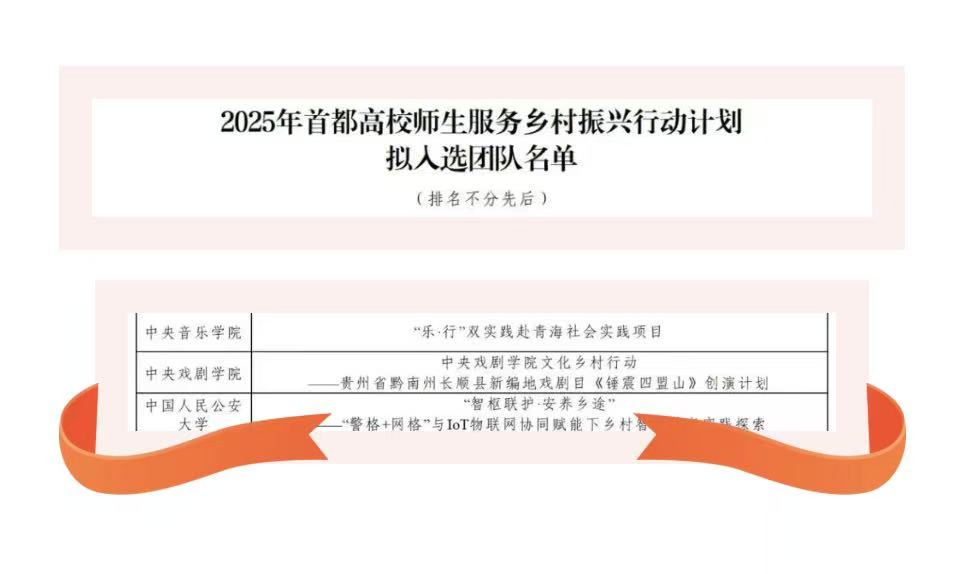 这份凝结了心血与汗水的成果——“中央戏剧学院文化乡村行动——贵州省黔南州长顺县新编地戏剧目《锤震四盟山》”实践项目,不仅是一次成功的艺术实践,更获得了高度认可。经学院团委推荐,该项目成功入选2025年首都高校师生服务乡村振兴行动计划。