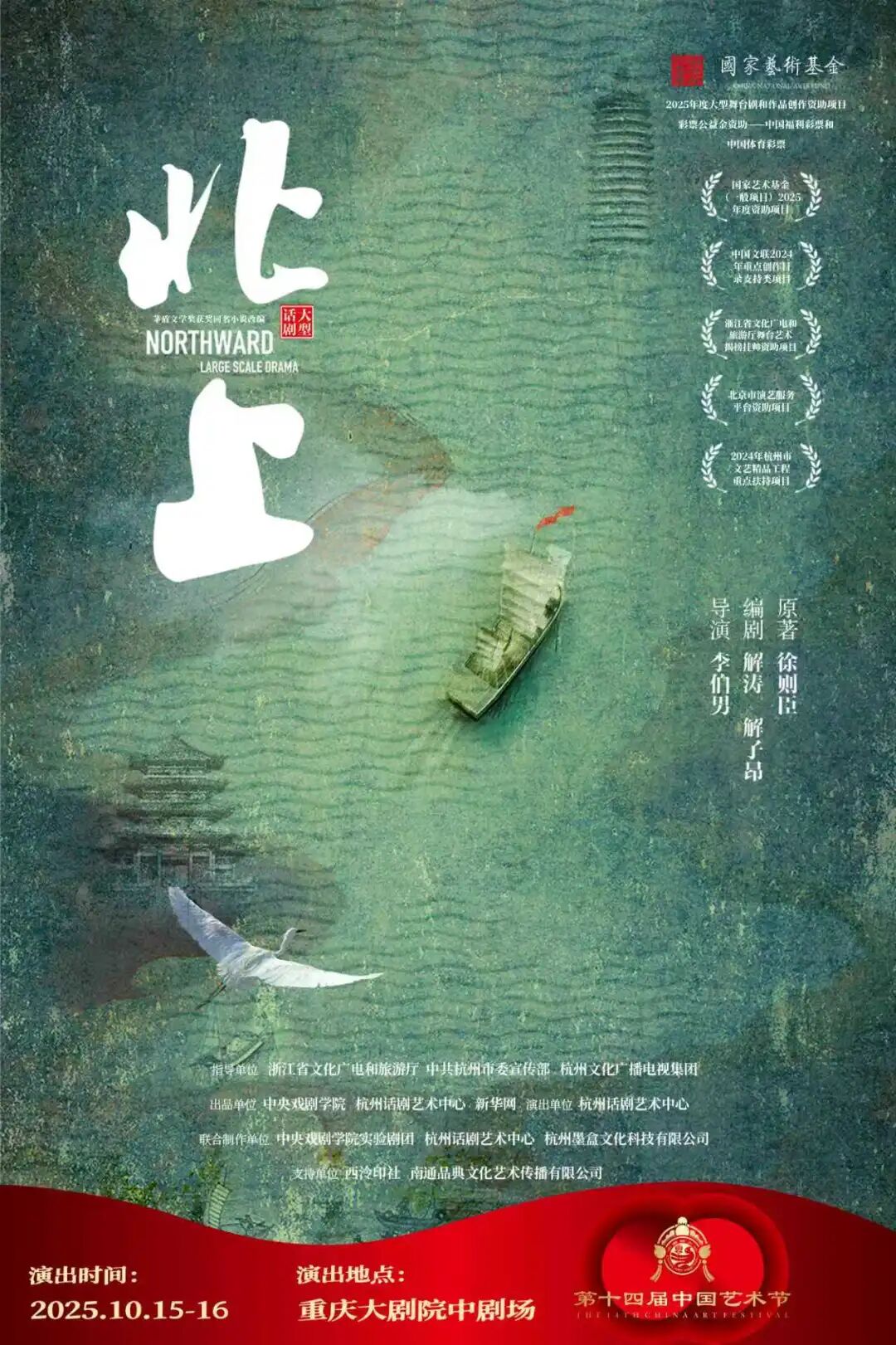 《北上》作为纪念中央戏剧学院建院75周年展演剧目,从立项创排到演出运营,中央戏剧学院和杭州话剧艺术中心资源共享、赋能创制。学院不断提供主创力量、演员资源、学术支持等,以《北上》为实践载体,深化央地校企合作模式,力图将地域文化优势转化为新质生产力,传承运河文化的精神内核,延续壮美运河的千年神韵,使之成为新时代宣传中国形象、展示中华文明、彰显文化自信的亮丽名片。