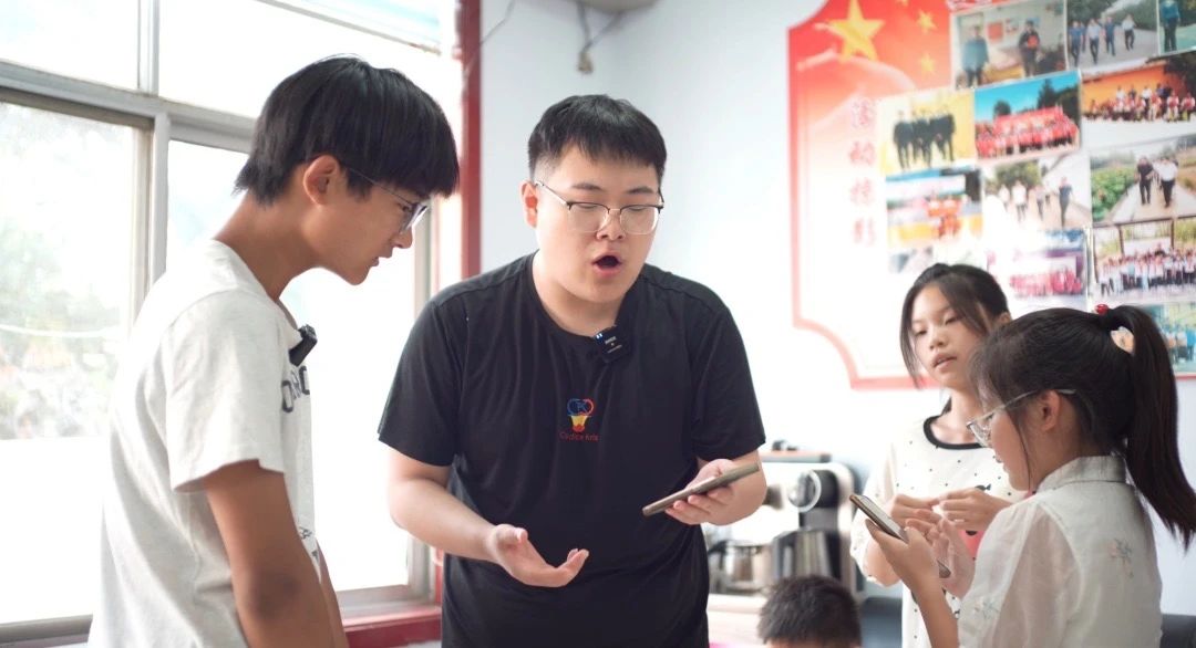 歌剧系李浩源同学在音乐课程中教授孩子们基本的乐理知识及合唱技巧,同时与师生共同发掘和记录当地的风土人情,选择适合孩子们演唱的曲目《童年》《送别》等,结合普通话的练习,融入演出节目。