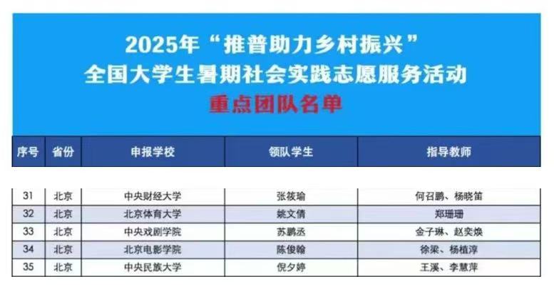 此次实践活动团队入选2025年“推普助力乡村振兴”全国大学生暑期社会实践志愿服务活动“重点团队”名单。活动在学院团委和专业教师的精心指导下,旨在通过推广普通话,提升乡村居民的语言交流能力,打破城乡之间的语言壁垒,同时发挥学院的专业优势,开展丰富多彩的美育活动,丰富乡村居民的精神文化生活,提升他们的审美水平和文化素养。来自不同系别的同学们积极参与,深入开展因地制宜的乡村振兴实践活动。