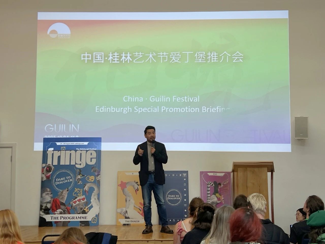 中央戏剧学院导演系主任、桂林艺术节艺委会委员兼秘书长杨硕在爱丁堡国际交流会推介桂林艺术节