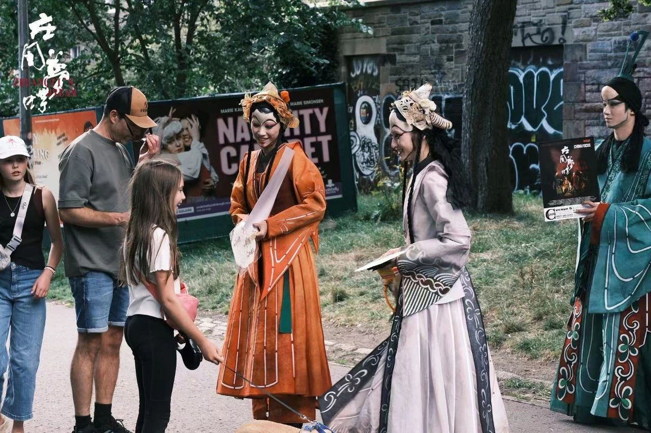 剧组演员身着戏服,在皇家一英里等地进行定点展示与互动演绎,吸引了大量观众驻足围观。许多外国友人纷纷合影打卡、主动了解剧目内容,相关宣传海报与折页迅速被一扫而空。艺穗节官方社交账号、凤凰卫视、CGTN等多家主流媒体进行报道,该剧还作为“特色亚洲节目”的特别拍摄对象,登上苏格兰当地的综艺节目。