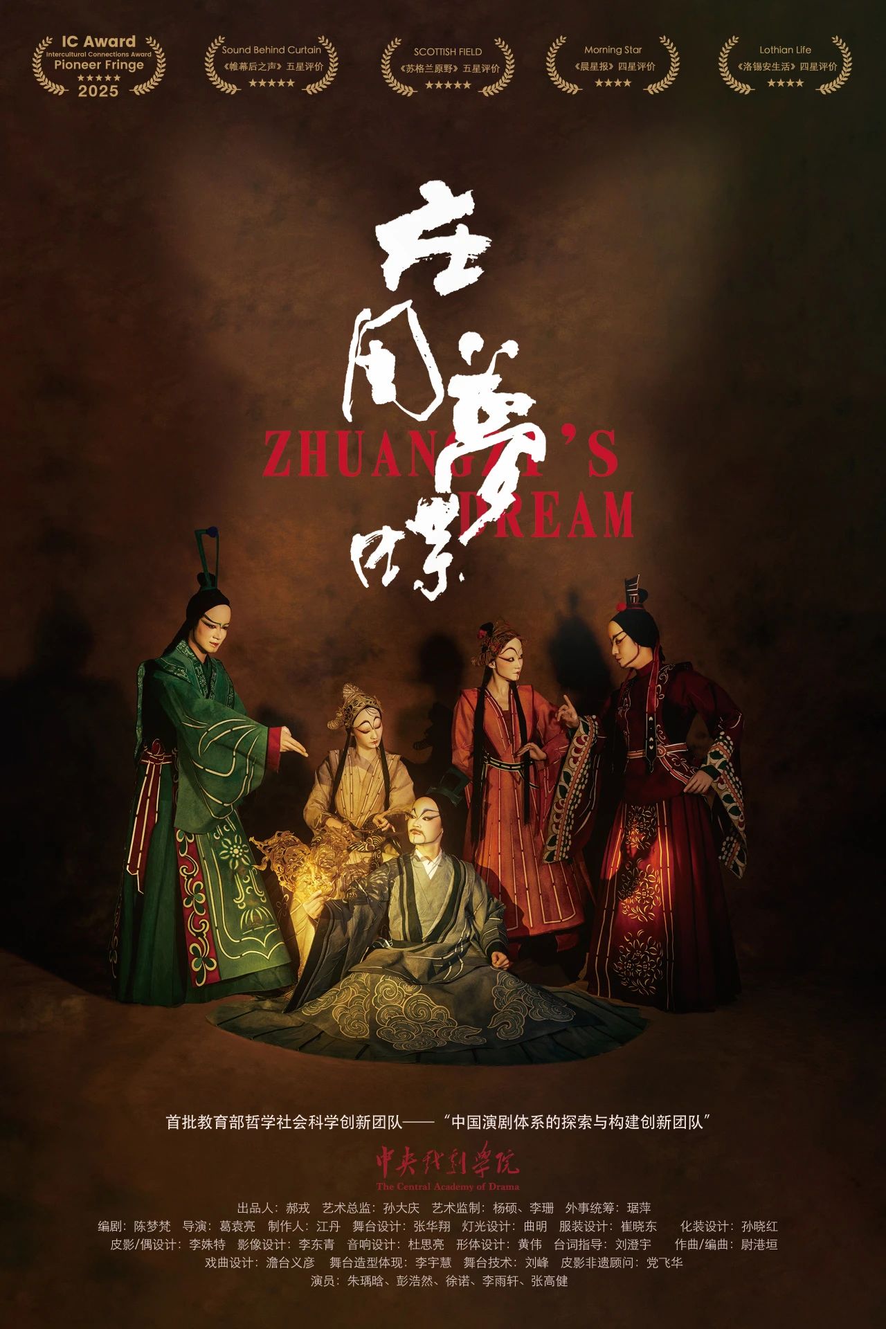 教育部首批哲学社会科学创新团队——“中国演剧体系的探索与构建创新团队”创排的原创话剧《庄周梦蝶》在继韩国首尔演出后,再次“出海”亮相爱丁堡艺穗节。该剧结合皮影、肢体、戏曲元素与哲学叙事,探索梦与现实、存在与虚无,展现了当代中国青年艺术家以传统文化为根基进行当代表达的独特创造力与文化自信。