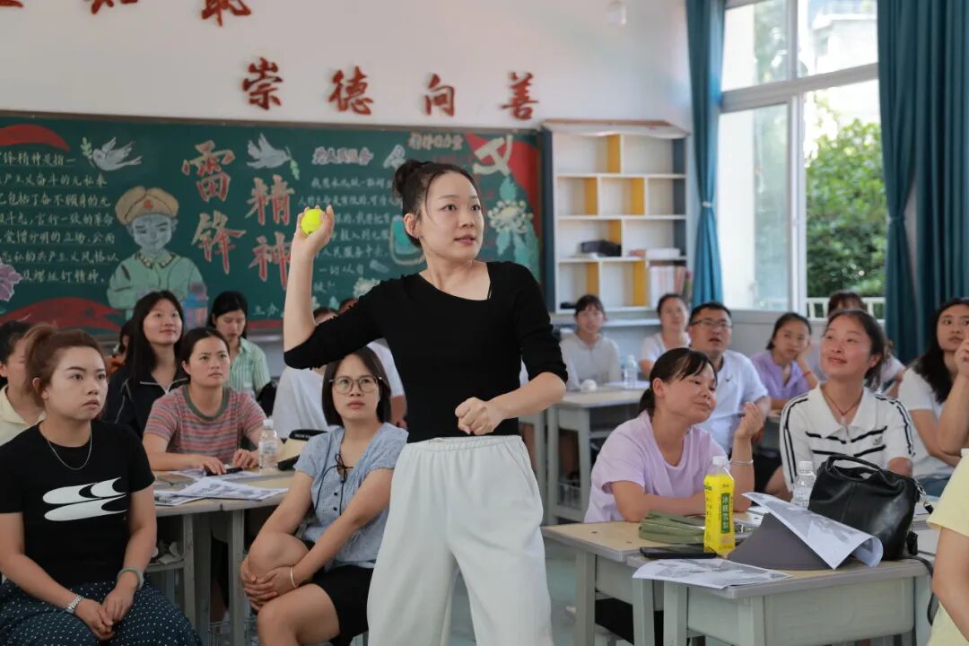 在学科体验课上,学科教师以学生身份,在孙菲、郭琰、杨奕等导师的引领下,切实体会了如何在学科课堂上融入戏剧的方法。每堂课结束后,老师们在导师的引导下展开热烈的分享和讨论,拓展丰富了课程教学内容。在最后一天的课堂展示中,教师学员以科目为单位进行分组,运用体验过的教学方法组织微课堂展示,产生了全新的效果。