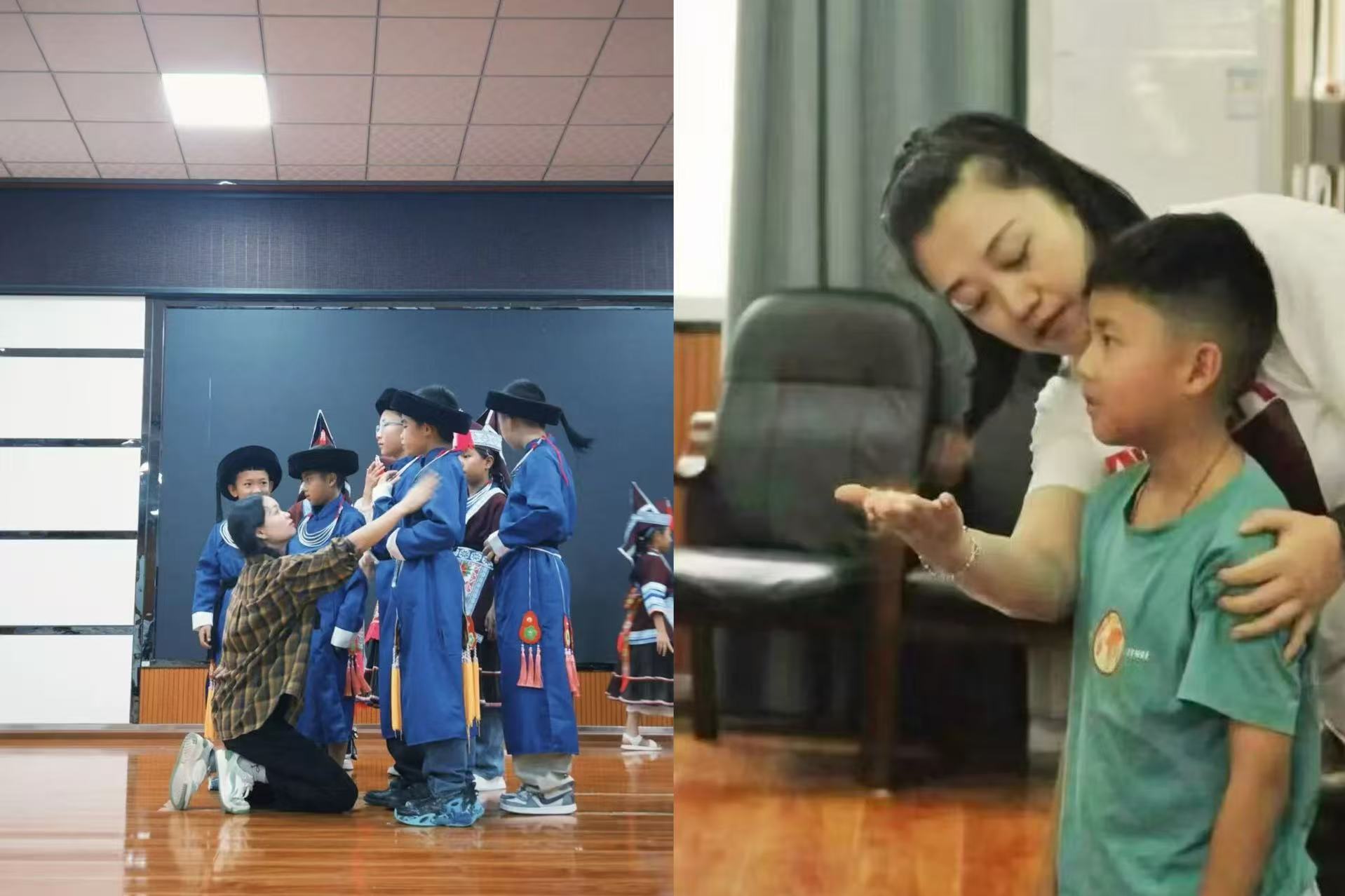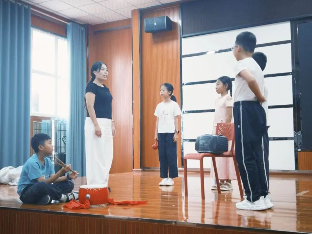 短短13天,团队在紧张而热烈的氛围中完成了从“零起点”到“舞台首演”的转化。值得一提的是,本次参与排演的教师和孩子们完全没有表演经验。通过耐心、细致、扎实的排演工作,这群“素人演员”逐渐从紧张生涩,成长为能够在舞台上自如表达的创作者。虽然面对巨大的排练与演出压力,但他们顶住了挑战,在排练场上拿出了最好的状态,认真执行导演的每个要求,并最终在舞台上呈现出饱满而真实的表演,赢得了观众的认可。孙菲导演还特别邀请了当地的非遗传承人芦笙手参与演出,使非遗文化融入美育故事中。