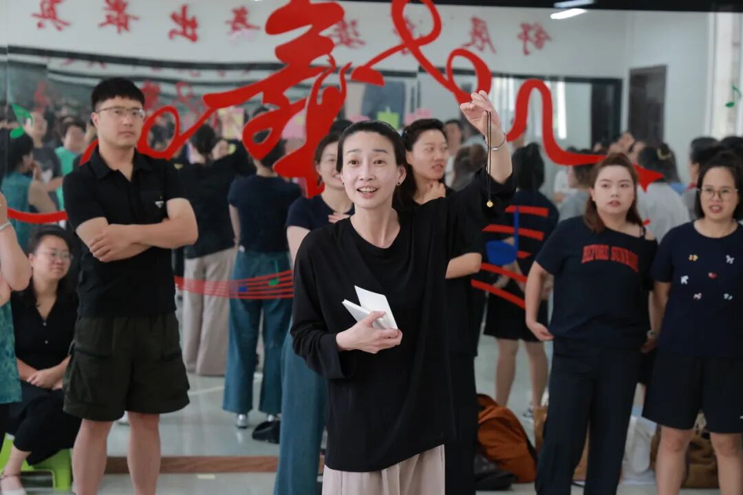 戏剧教育系韩鑫副教授在课堂上培养学员们的肢体协调能力,引导他们体会面部表情在戏剧表演中的重要性,并通过 “探索空间”和形体操训练等教学活动,让学员们感受动作节奏的变化,理解形体的可塑性。