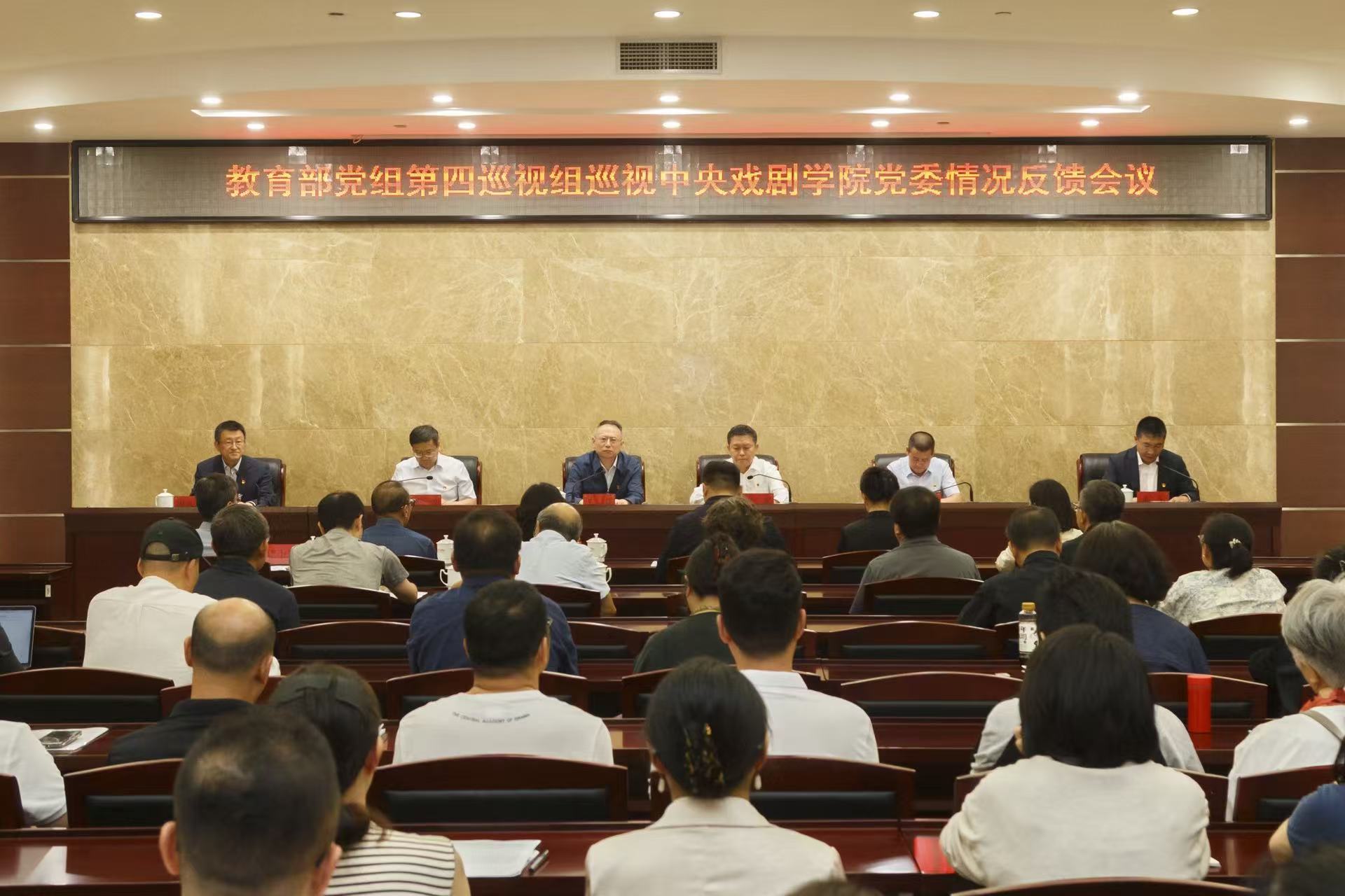 近日,教育部党组第四巡视组向中央戏剧学院党委反馈了巡视情况。组长王辉分别向中央戏剧学院党委书记徐永胜,党委副书记、院长郝戎和学院党委领导班子反馈了巡视情况。教育部巡视工作办公室负责同志传达了教育部党组关于抓好巡视整改的工作要求。徐永胜在反馈大会上作表态发言。郝戎主持会议。