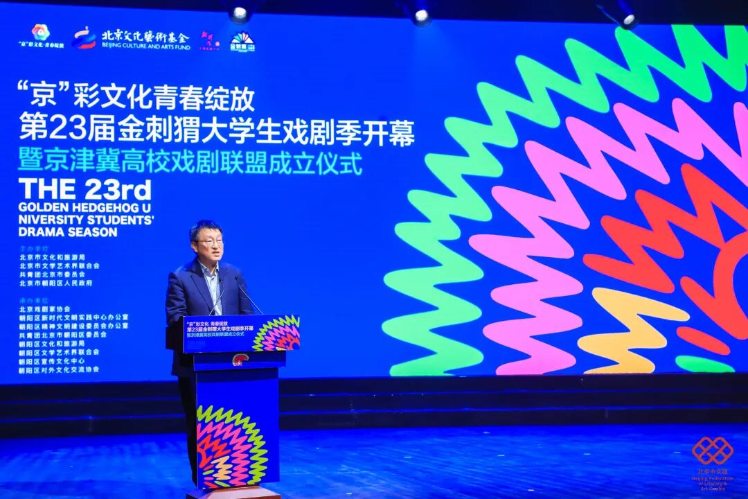 9月28日下午,第23届金刺猬大学生戏剧季开幕暨京津冀高校戏剧联盟成立仪式举行。戏剧界专家学者、京津冀地区高校代表、高校剧社师生及媒体记者等近400人齐聚一堂,共同见证京津冀校园戏剧发展新篇章。北京剧协副主席、北京剧协戏剧教育专业委员会主任、中央戏剧学院党委书记徐永胜参加仪式并致辞。