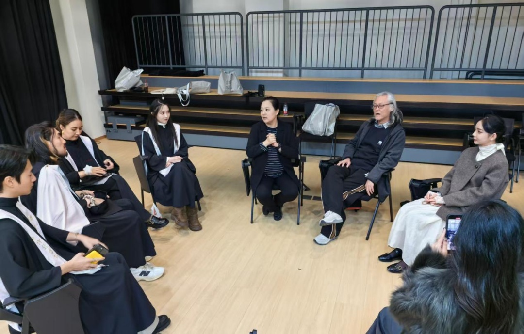 下午,大家在教室随意就座交谈,畅谈理想与生活,也谈及那几年在中戏学习的快乐与遗憾。几张桌子拼接在一起,宛如从前的课堂。老师询问毕业生们的近况,大家讲述着各自所在的城市、舞台经历、事业发展、家庭情况,也提及一路走来的失落与坚持。有人表示终于补上了那句“毕业快乐”,有人笑着说“原来告别也能如此轻松”。这场交谈让人倍感温暖,恰似一座灯塔,照亮毕业生们前行的路。