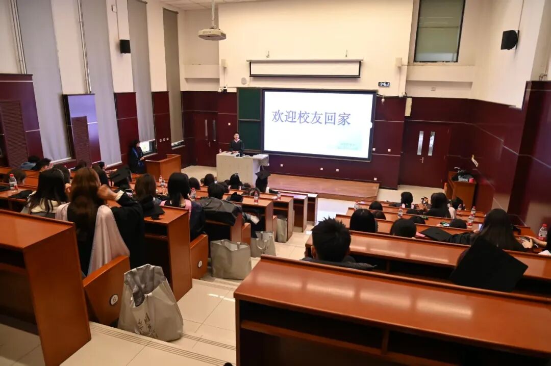 活动由2022届研究生高子鹤担任主持。在介绍到场师生之后,2020届毕业生代表黄宇轩、唐晨,2022届毕业生代表白羽舒婷、刘慧子作为校友代表依次发言,深情回顾校园时光。在最后的自由交流环节,众人畅叙情谊,氛围热烈。