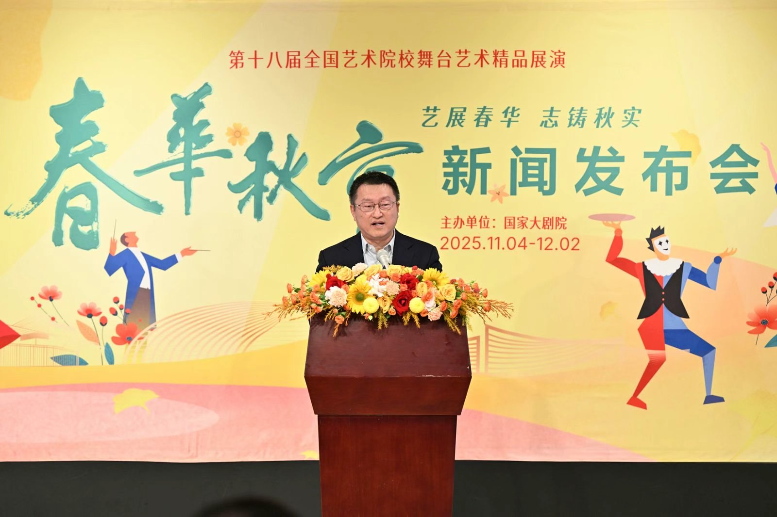 11月4日,第十八届“春华秋实”全国艺术院校舞台艺术精品展演于国家大剧院正式拉开帷幕,中央戏剧学院党委书记徐永胜应邀出席展演新闻发布会并作主旨交流发言。12月2日,学院原创话剧《风云儿女》也将亮相本届“春华秋实”展演。