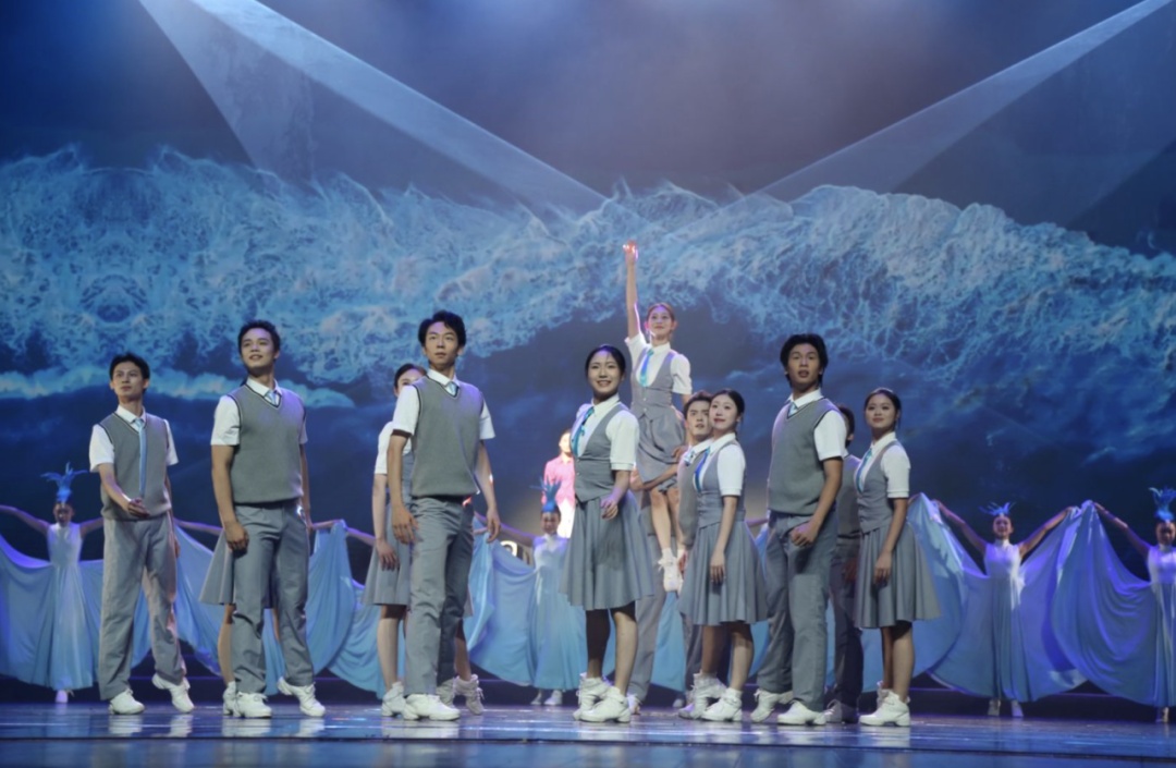 由舞剧系14名同学与中国传媒大学、中国音乐学院、中国人民大学附属中学的同学们共同参演的情景表演《逐浪者》聚焦新时代教师队伍发展,解读“做学子前行路上永不疲倦的引路人”的丰富内涵。