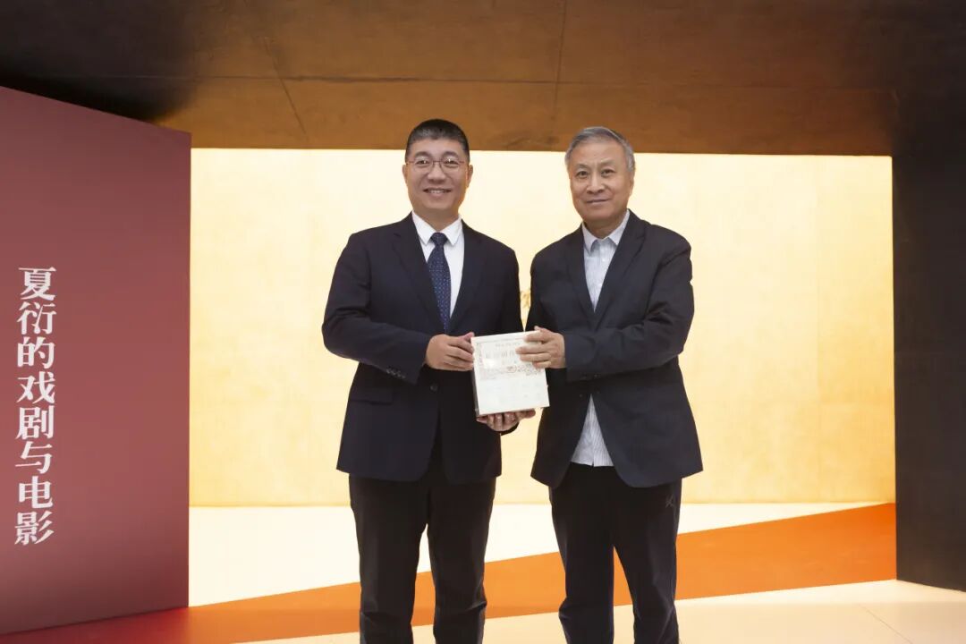 展览开幕式上,阎晓明代表中国电影基金会向学院捐赠了三百套《夏衍剧作十种》,沈芸向中央戏剧学院中国现代戏剧馆捐赠了夏衍相关文献资料,平睿代表北京中央戏剧学院教育发展基金会向北京师范大学教育基金会副秘书长赵铁峰颁发了捐赠证书。