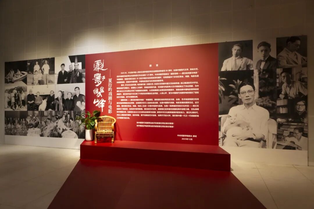 12月4日下午,“剧影双峰——夏衍的戏剧与电影”展览在中央戏剧学院昌平校区盛大开幕。本次展览由中央戏剧学院主办,中央戏剧学院中国现代戏剧馆承办,北京师范大学教育基金会资助。展览通过展示夏衍的珍贵文献、影像资料和实物展品,结合专门设计的沉浸式舞台装置,全面呈现了夏衍在中国戏剧和电影发展历程中所作的卓越贡献。本次展览的举办,既是学院对这位文艺先驱的深切缅怀与崇高致敬,亦是赓续红色文艺传统、弘扬现实主义创作精神的又一生动实践。