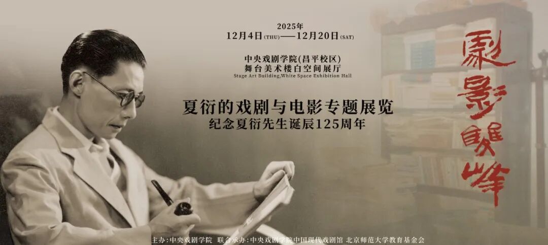 “剧影双峰——夏衍的戏剧与电影”展览在学院舞台美术楼白空间展厅展出,将持续至12月20日,面向校内外观众开放。