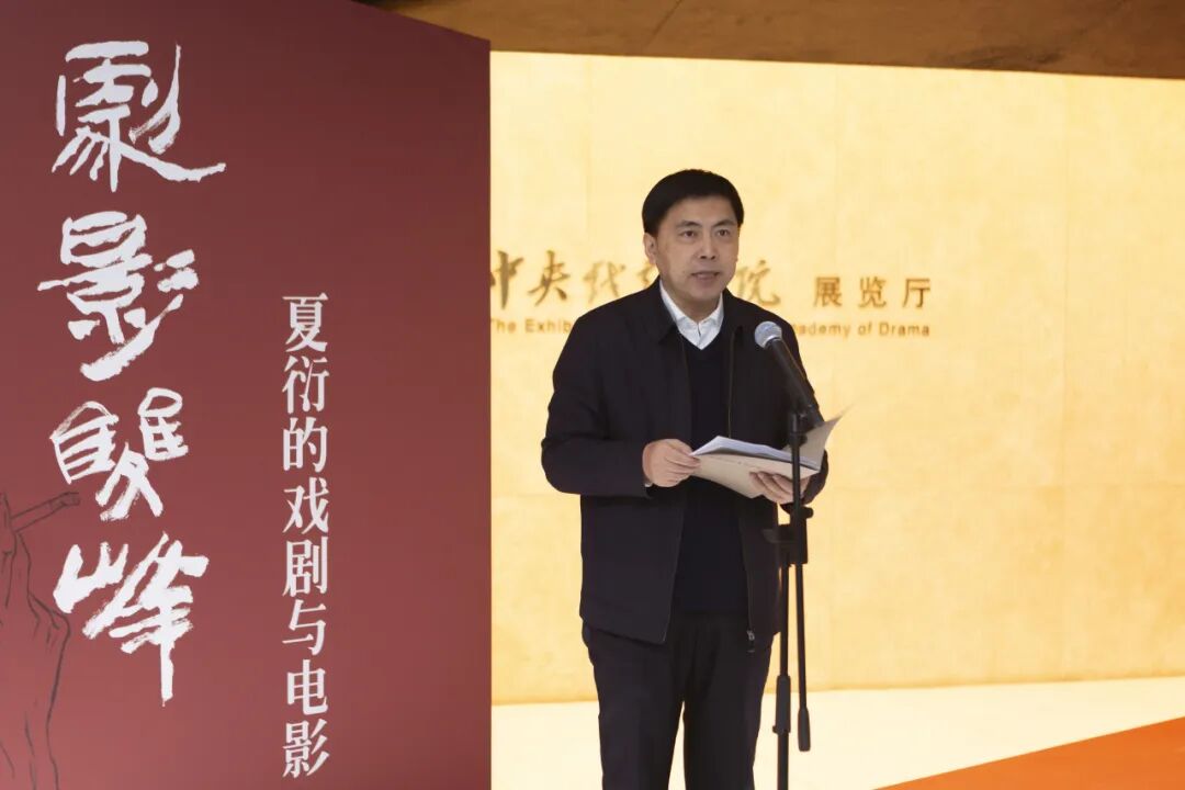 郝戎在致辞中指出,在2025年这样一个承载着历史分量与文化意义的特殊年份举办这次专题展览,既是对夏衍跨越半个多世纪的革命活动及戏剧、电影生涯的重要回顾,也是作为国家戏剧影视艺术和艺术教育重要阵地的中央戏剧学院向前辈先贤的致敬。他强调,夏衍在戏剧与电影领域的卓越成就,不仅是个人才华的展现,更是中国共产党领导文艺工作的成功实践。夏衍始终秉持文艺为人民服务的宗旨,创作了《包身工》《上海屋檐下》《林家铺子》等深刻反映时代、深受人民喜爱的经典作品。学院希望以展览为契机,引领青年学子从前辈的足迹中得到启迪,从其艺术遗产中汲取营养,同时凝聚行业力量,共同推动戏剧影视艺术在守正创新中再攀高峰。
