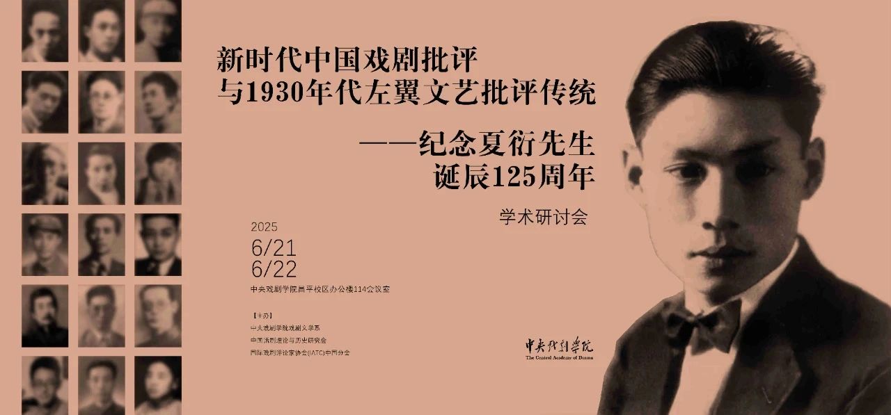 6月20日—22日,由中央戏剧学院戏剧文学系、中国话剧理论与历史研究会、国际戏剧评论家协会(IATC)中国分会联合主办的“新时代中国戏剧批评与1930年代左翼文艺批评传统——纪念夏衍先生诞辰125周年学术研讨会”在中央戏剧学院(昌平校区)成功举办。来自北京大学、美国布兰迪斯大学、重庆师范大学、复旦大学、清华大学、山东师范大学、上海师范大学、上海戏剧学院、四川省艺术研究院、浙江大学、中国传媒大学、中国人民大学、中国社会科学院、中国现代文学馆、中国艺术研究院、中南大学、中央戏剧学院等十余所高校、研究机构的学者齐聚一堂,就夏衍的创作和批评实践、新时代中国戏剧批评与左翼文艺批评传统等问题展开深入研讨。