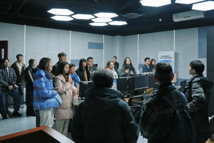 随后,两校师生党员一行来到中央戏剧学院与华为技术有限公司共建的“智慧艺术教育空间”样板点进行参观调研。该空间面向课程教学与科研需求,集资源采集、算力调度、实时互动、数字资产管理等功能于一体,支持表演捕捉、虚实融合舞台创作、数字内容生成等多种教学与创作场景。通过实验室工程师详细讲解,来访师生认为,该空间为课程建设、专业训练实操与创新实践提供了真正可落地、可使用、可迭代的基础条件,为构建新型教学场景提供了有益示范。