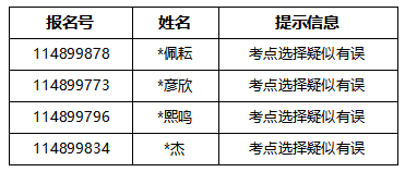 (1)根据上述要求,部分疑似考点选择有误的应届生如下: