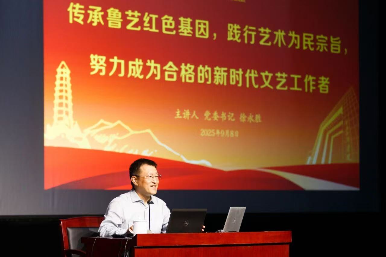 9月8日下午,学院党委书记徐永胜以“传承鲁艺红色基因,践行艺术为民宗旨,努力成为合格的新时代文艺工作者”为题,向2025级新生讲授了一堂精彩的“开学第一课”。