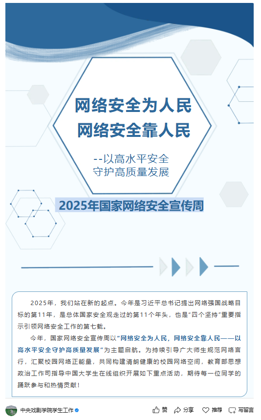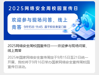 2025年国家网络安全宣传周于9月15日至21日举办,主题为“网络安全为人民 网络安全靠人民——以高水平安全守护高质量发展”,其中9月16日为校园日。为深入宣传贯彻习近平总书记关于网络强国的重要思想和关于教育的重要论述,贯彻国家网络安全工作“网络安全为人民,网络安全靠人民”的核心思想,强化校园网络安全管理和防护水平,提升广大师生网络安全意识,学院将“网络安全”作为秋季学期安全教育的重点内容,在校园内开展了一系列宣传教育活动。