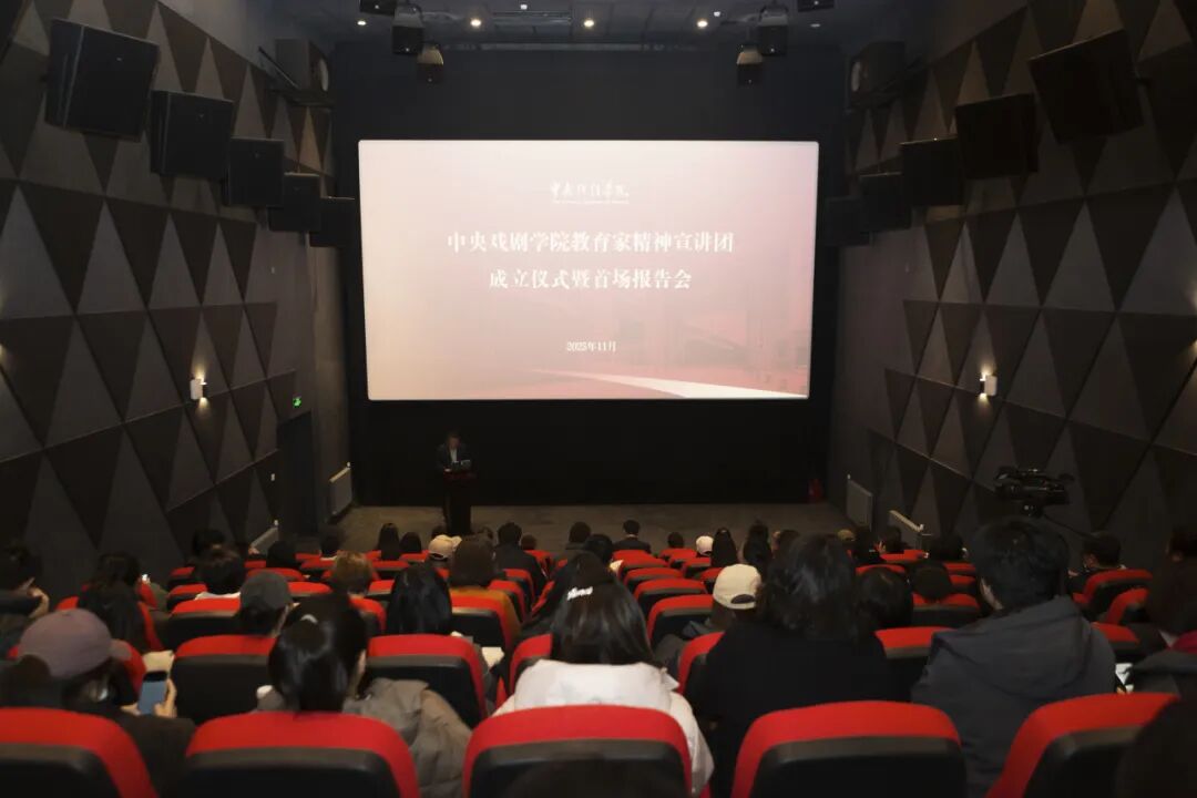 成立仪式结束后,宣讲团随即举行了首场报告会。本次报告会以“大力弘扬和践行教育家精神”为核心主题,宣讲团成员立足戏剧教育实践、师德师风建设、艺术人才培养等多元维度,系统阐释了教育家精神在中戏的传承脉络与实践路径。报告中,他们以真挚饱满的情感、鲜活生动的育人故事,深入浅出地解读教育家精神的丰富内涵,立体展现其在戏剧教育领域的实践力量,让现场教师深受触动、倍感振奋,整场报告会掌声雷动、氛围热烈。