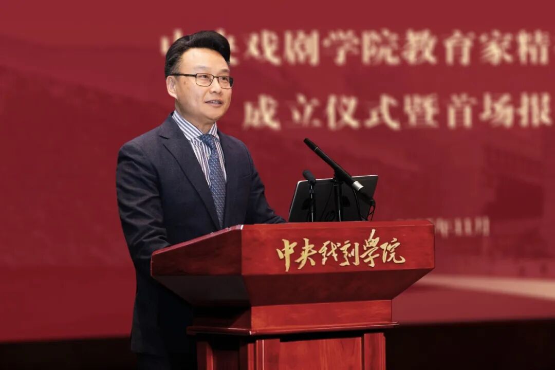 徐永胜在讲话中深入阐释了教育家精神的时代内涵,指出教师是立教之本、兴教之源,教育家精神是为党育人、为国育才的使命召唤,也是学院事业高质量发展的核心动力。作为新中国戏剧影视艺术教育的最高学府,中戏75年的办学历史中积淀形成的爱国为民、崇德尚艺、甘为人梯、精益求精的优良传统,正是教育家精神在戏剧影视艺术领域的生动体现。他强调,学院成立教育家精神宣讲团,不是简单的“树典型、讲故事”,而是要从历史与现实、理论与实践、个人和国家的关系当中,深刻理解教育家精神的时代价值。他希望宣讲团当好精神内涵的“深度阐释者”,结合学院深厚传统与鲜明特色,讲清楚教育家精神的核心要义与中戏实践;当好红色基因与艺术传统的“忠诚传承者”,讲好老一辈教育家的感人故事;当好育人楷模与师德典范的“生动讲述者”,让教育家精神可触可感;当好学院文化建设与事业发展的“积极推动者”,引导全体教职员工将精神力量转化为实际行动。全体教师要自觉以教育家精神为引领,积极进取、锐意改革,不断开创学院事业发展新局面,共同为培养杰出戏剧影视艺术人才、繁荣社会主义文艺事业贡献智慧和力量。