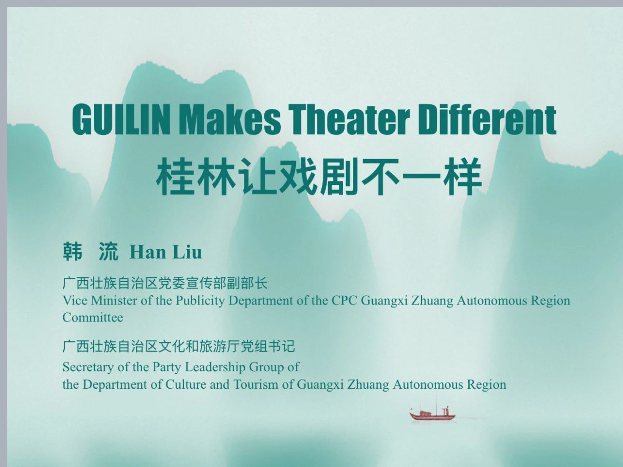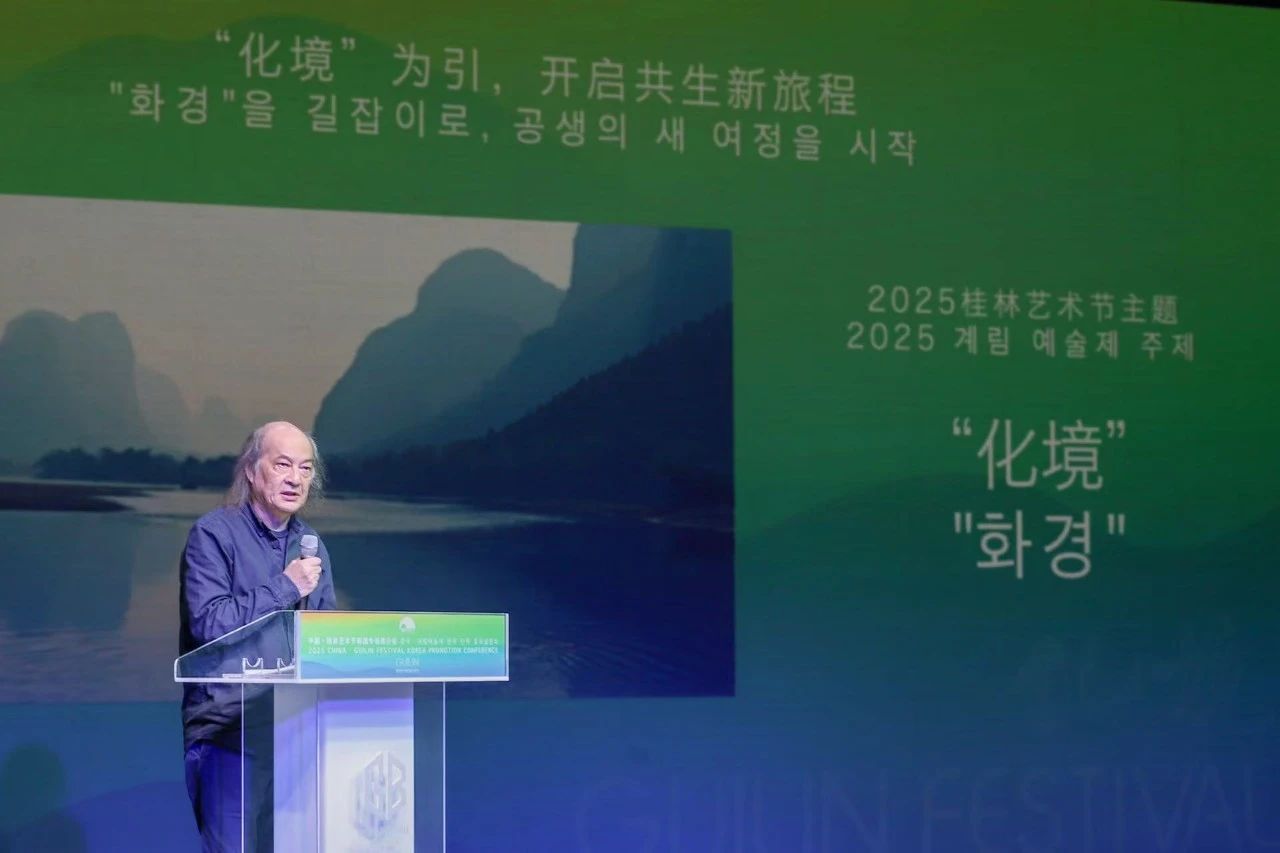 韩流发表题为《桂林让戏剧不一样》的主旨演讲,隆重推介2025桂林艺术节。演讲回顾了桂林深厚的历史文化脉络,阐释艺术节“戏剧+”“山水+”“国际化”“年轻态”“人民性”五大特色,展现中国西南文旅融合的新路径。韩流诚挚邀请韩国及全球朋友于10月26日至11月2日相聚桂林,感受自然山水与当代表演艺术的交汇之美。
