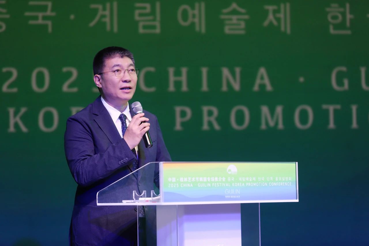 7月25日下午,由中国广西壮族自治区党委宣传部、自治区文化和旅游厅、中央戏剧学院和桂林市委市政府联合主办的2025桂林艺术节韩国专场推介会在首尔加宾艺术中心隆重举行。