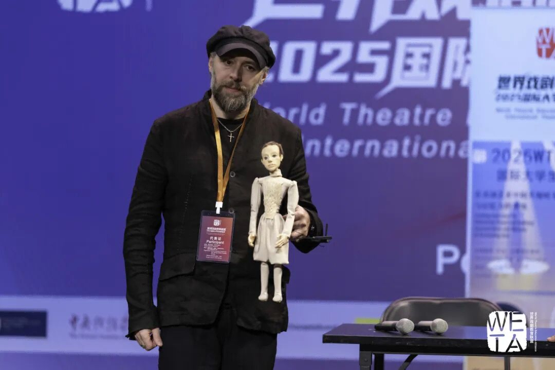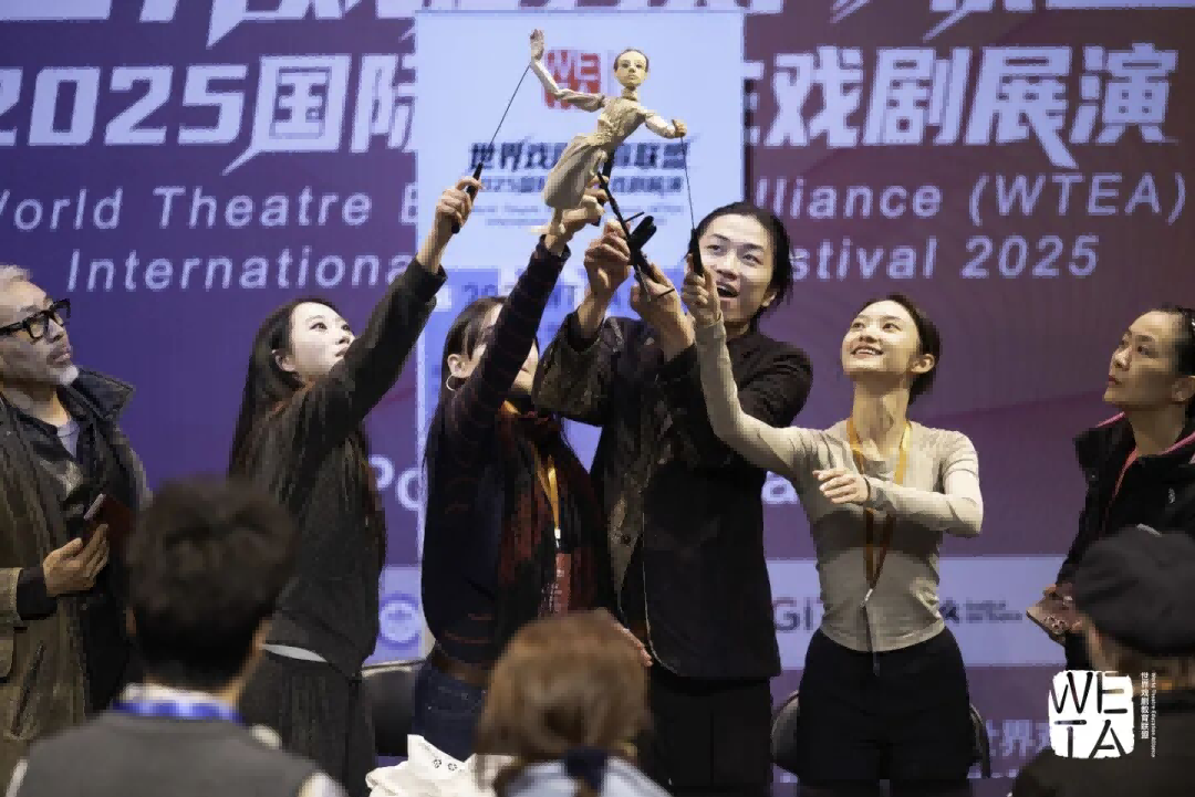 At the workshop's conclusion, Prof. Sabashvili invited participants on stage to experience the magic of puppet manipulation firsthand. He expressed his hope that more artists would engage in the creation and performance of puppetry, driving this traditional art form to embrace creative innovation and technological change in the contemporary era.