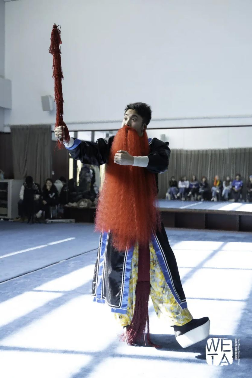 Following the student demonstrations, Prof. Zhao led an interactive session with the audience. By demonstrating stylised movements such as walking in platform shoes and specific hand gestures, he helped participants experience the traditional aesthetic concept of "Round Heaven and Square Earth" in Peking Opera, broadening their overall understanding of the art form. Additionally, the instructor used details like the wearing and colour of the "rankou" (artificial whiskers) to help students from various countries understand the personalities and actions of different "Jing" characters through accessories and props, thereby better grasping the stylised and symbolic nature of Peking Opera.